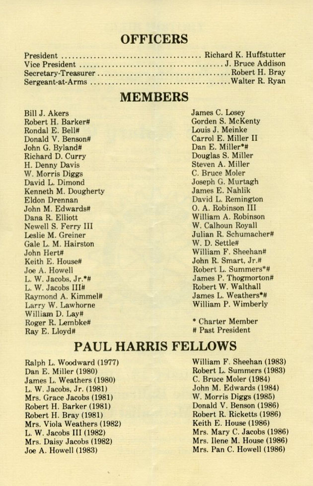 Special Events in the History of the Rotary Club of Fayette, Missouri
